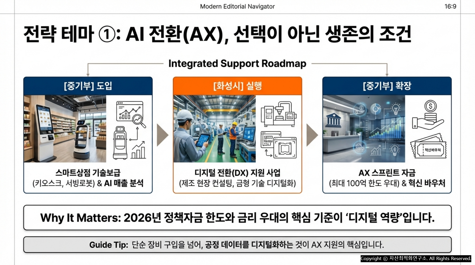 - [AX 스프린트]: AI 기술을 현장에 적용하는 기업에게 파격적인 융자/보증 한도 제공.