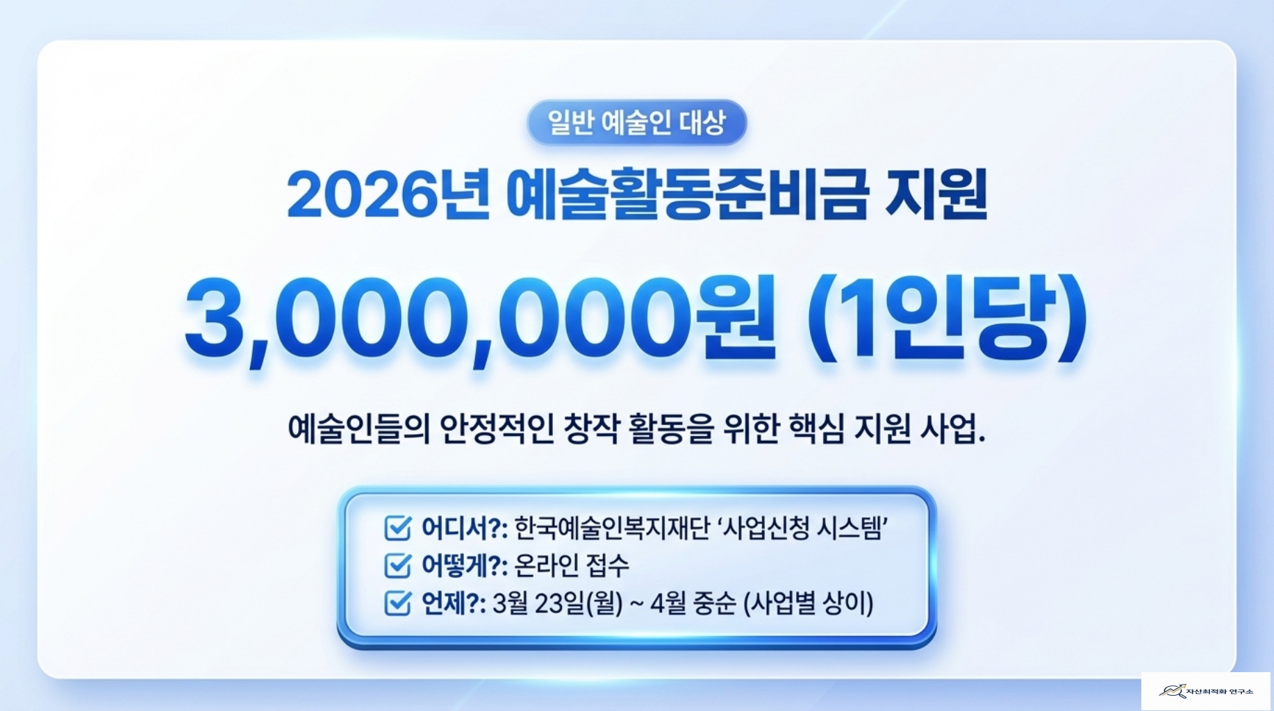| 예술활동준비금 | 일반 예술인 | 1인당 300만 원 | 4월 중순 (이번 주 홀짝제) |