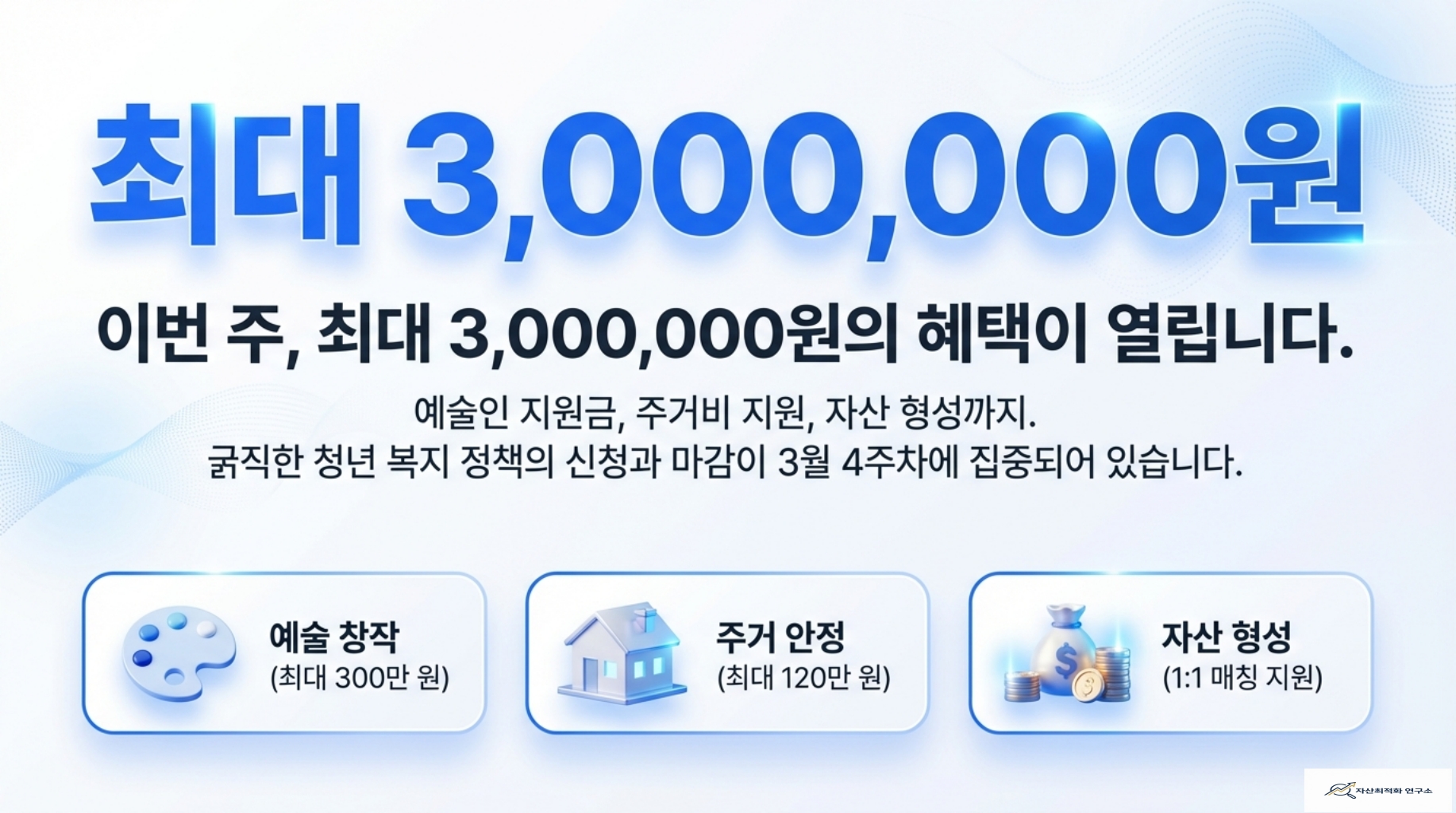 복잡한 조건은 빼고, 당장 신청해야 할 핵심 지원금만 모았습니다. 이번 주, 최대 3,000,000원의 혜택이 열립니다. 예술인 지원금부터 주거비 지원, 자산 형성까지 놓치지 마세요.