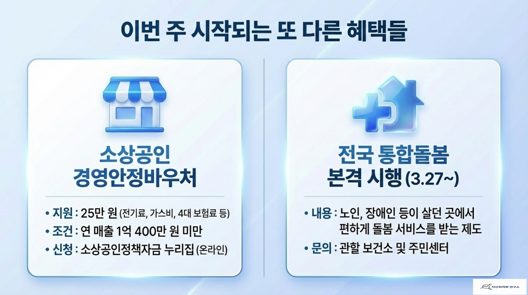 - 전국 통합돌봄 시행: 3월 27일부터 노인·장애인 대상 살던 곳에서 받는 돌봄 서비스가 본격 시행됩니다.